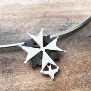 Handgemaakte Hugenotenkruis, zilver gecombineerd met zirkonium